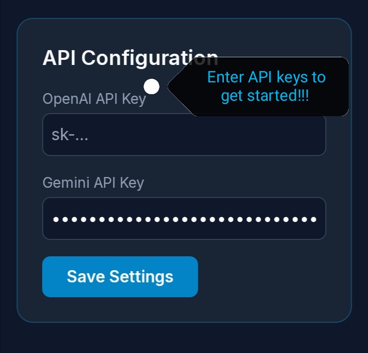 - Enter your personal OpenAI or Gemini API Key in the settings.