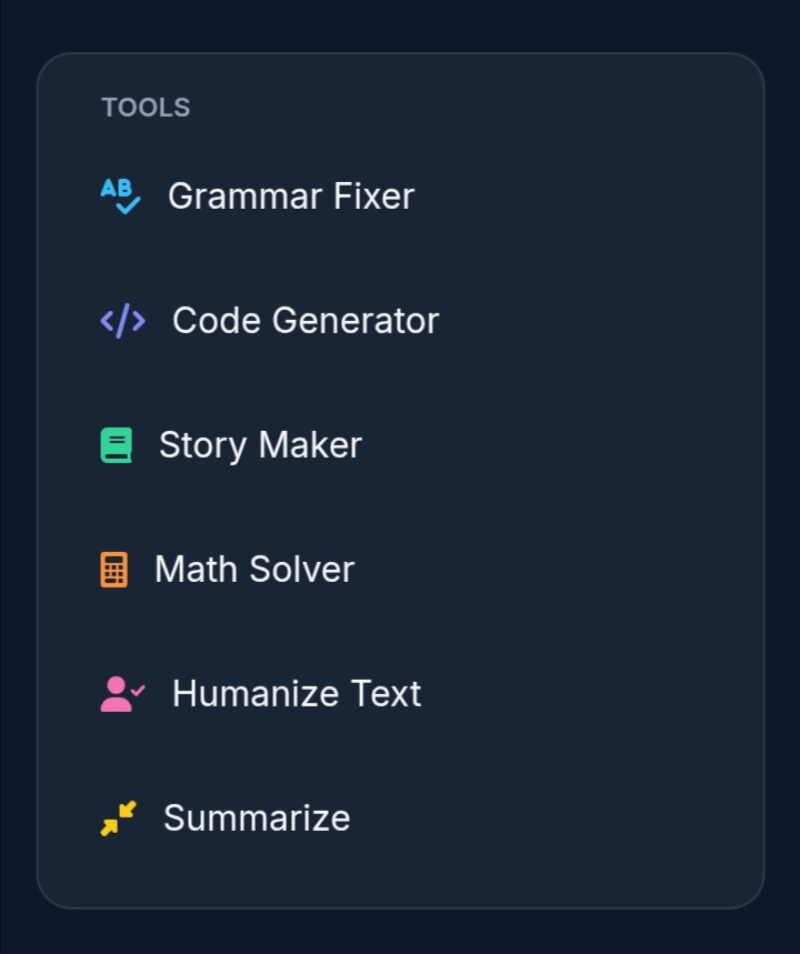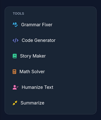 - Choose your tool from the sidebar (Grammar, Code, Math, etc.).